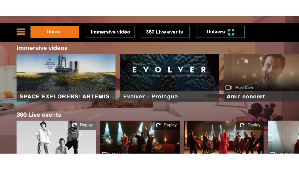 Dans le cadre d’un projet scolaire, la mission consiste à créer une identité visuelle pour une filiale de la marque Orange. Cette filiale est une plateforme de streaming spécialisée dans la réalité virtuelle (RV). L’objectif du projet est de promouvoir une offre proposée par Orange : l’achat d’un casque donne accès à cette nouvelle plateforme. Cette offre est destinée aux familles, incluantles parents et les enfants.